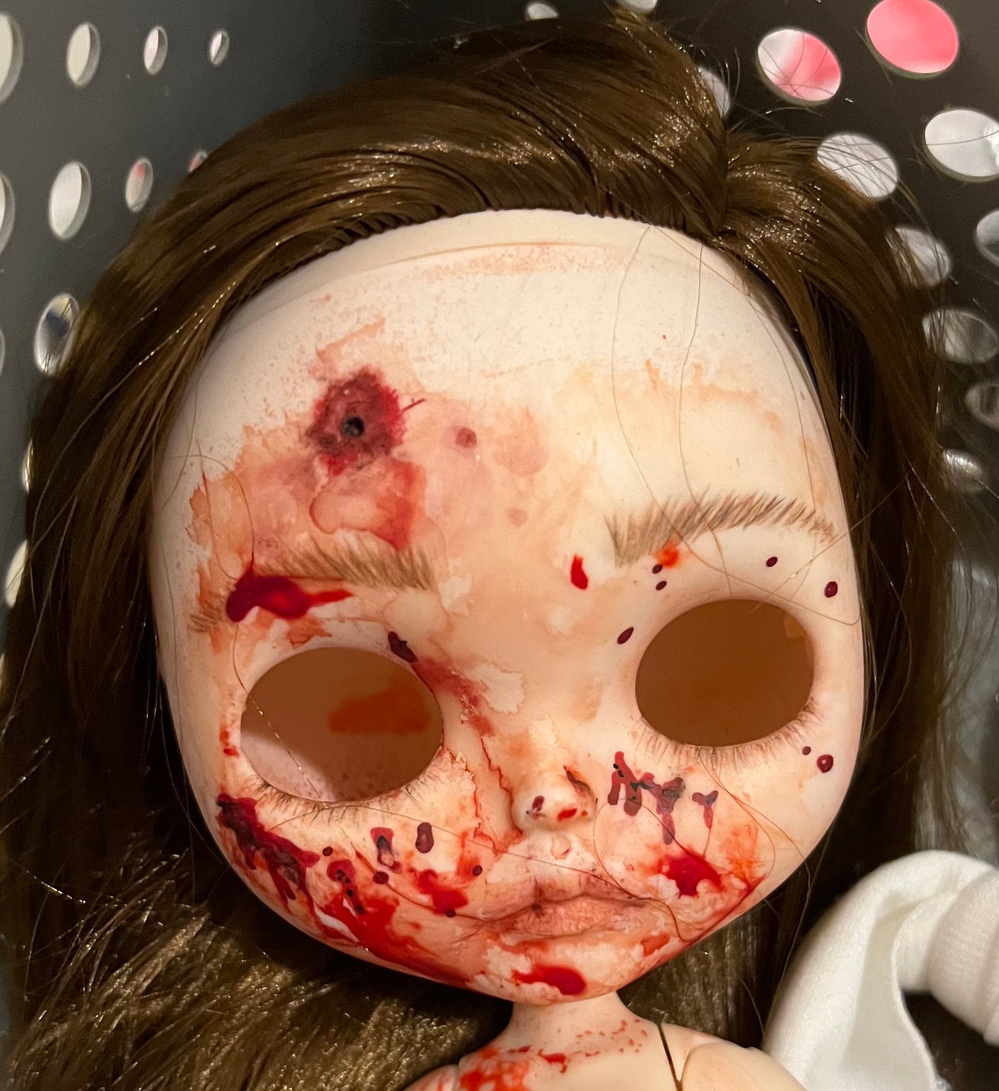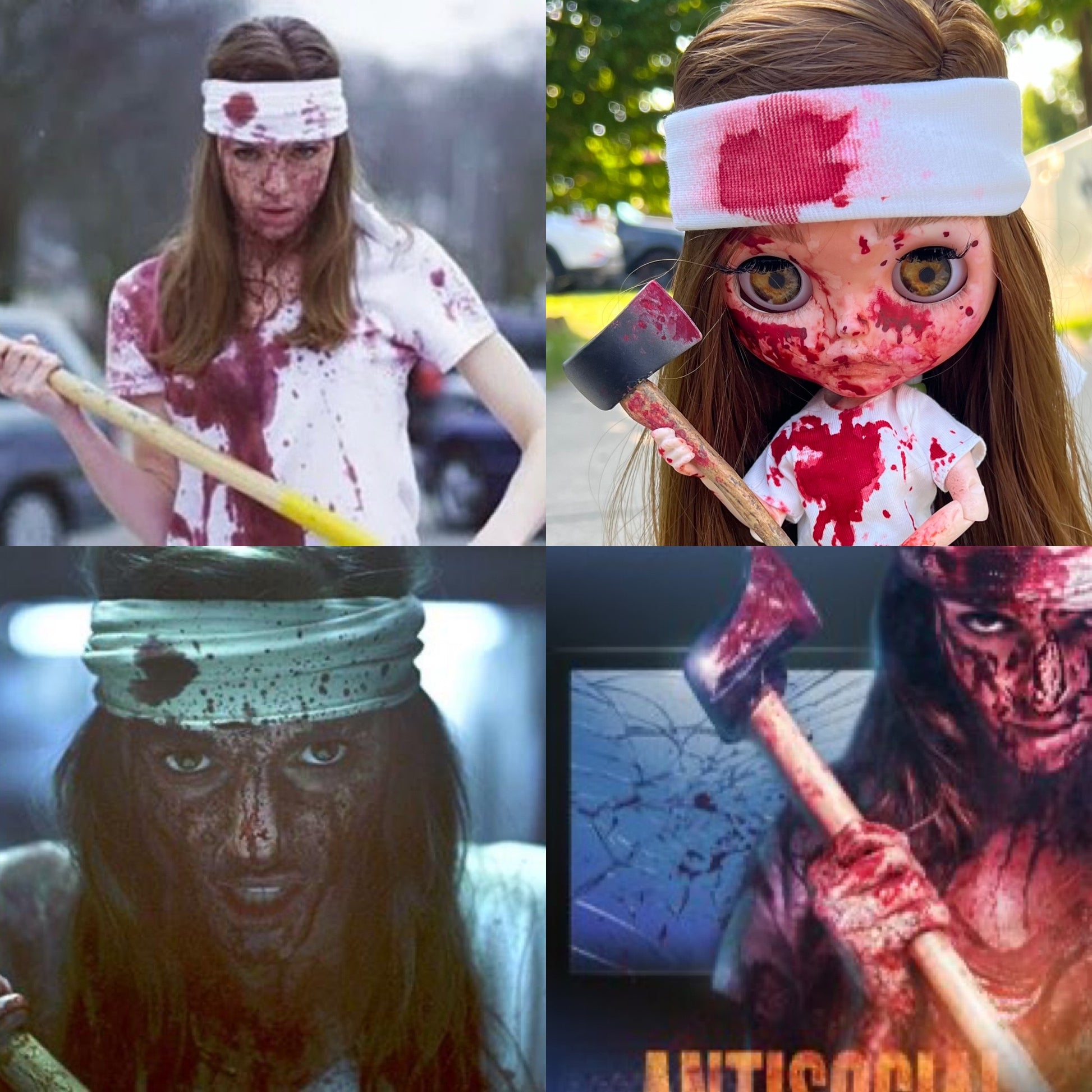 One of kind. Customized doll, Inspired by the character Sam (played by Michelle Mylett) from Black Fawn Films 2013 Canadian Horror Film Antisocial.